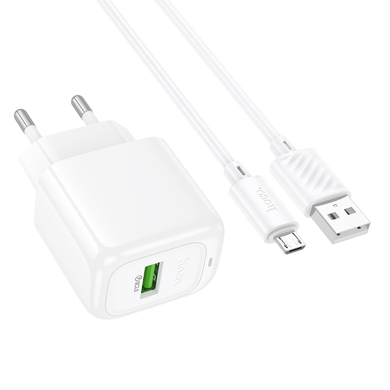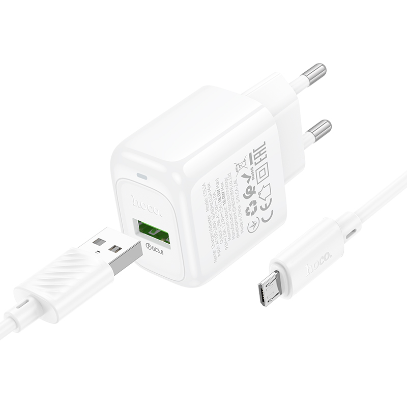 Купить СЗУ micro USB (3A/18W) "HOCO" CS52A , QC3.0 + кабель белое по лучшей цене с доставкой - интернет магазин №1 в России